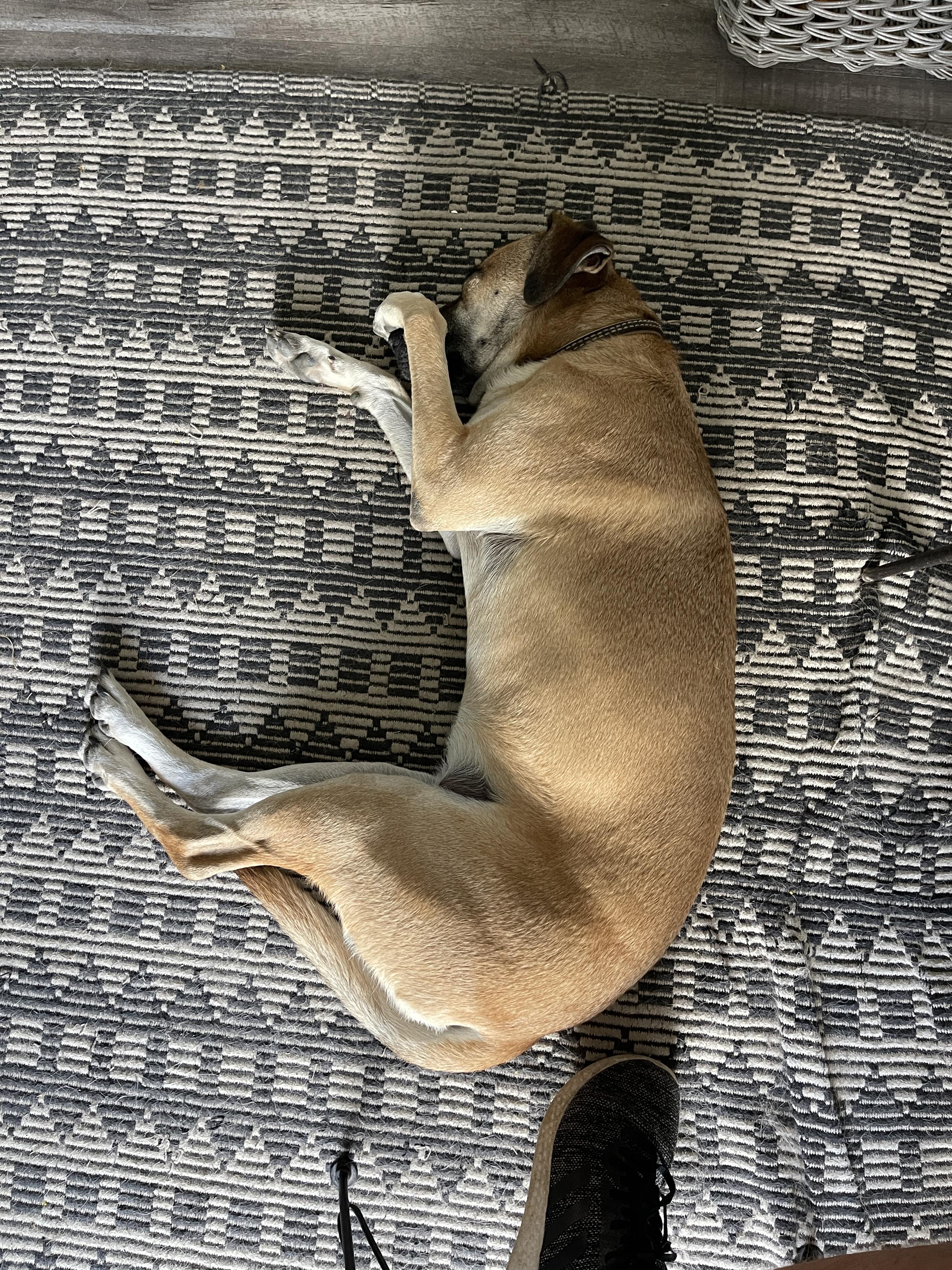 My silly little girl sleeping on the floor next to me while I was working earlier.
