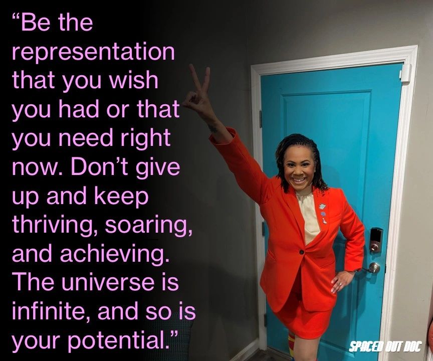 Be the representation that you wish you had or that you need right now. Don’t give up and keep thriving, soaring, and achieving. The universe is infinite, and so is your potential.